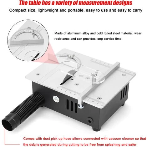 | Ceci est une sorte de scie multifonction mini-table, est livré avec la lame de scie en acier à haute vitesse, et qui est 14mm projeté hors de la table. 96W haute puissance, powersupply de commande de vitesse du train 7 peut répondre aux exigences de découpe de matériaux différents. Convient pour la coupe PCB, petits bois bâtons, PMMA, Sonnez-pull, mince planche de bois, alliage d’aluminium et etc .. Parfait pour artisanat bricolage, la construction de modèles, décoration travail du bois, etc .. et vous pouvez essayer. Caractéristiques: Taille compacte, légère et portable, facile à utiliser et facile à transporter. Fabriqué en alliage d’aluminium et des matériaux en acier laminé à froid, résistance à l’usure et peut indiquer le temps de service à long. 96W haute puissance, powersupply de commande de vitesse du train 7 peut répondre aux exigences de découpe de matériaux différents. Est fourni avec une lame en acier à haute vitesse, profondeur de coupe de 14 mm, adapté pour couper des bâtonnets de bois. Précise la conception à grande échelle, gravure au laser, résistant à l’usure et pas facile à estomper. Le réglage transparent garde acrylique pour toucher l’empêche par erreur et sawblade ne bloque pas la vue. Livré avec la poussière ramasser le tuyau permet relié à un aspirateur afin que les débris générés lors de la coupe est exempt de projections et plus sûr. Parfait pour l’artisanat bricolage, la construction de modèles, décoration travail du bois, etc .. et Caractéristiques: Nom: Mini Scie à table Matériel: alliage d’aluminium + acier laminé à froid Puissance nominale: 96W Tension nominale: DC24V, 10A Vitesse de rotation nominale: 5000rpm Applicative lame: diameter≤63mm, épaisseur <1,5 mm, alésage 16 mm = TIRE: 100mm / 3.94in Profondeur de coupe: 14mm / 0.55in Taille de l’article: Table de scie taille: 180 * 140 * 60 mm / 7,09 * 5,51 * 2.36in Sawblade: 63 * 63mm / 2,48 * 2.48in, alésage = 16mm / 0.63in Taille de l’emballage: 290 * 170 * 100mm / 11.42 * 6,69 * 3.94in Poids du paquet: 1900g / 4.19lb Liste de colisage: 1 * Mini Scie à table hôte 1 * 7 vitesses Commande de vitesse Powersupply (option de US / UE) 1 * à grande vitesse en acier Sawblade 1 * Tuyau poussière Pick-up 1 * Angle règle Push 1 * Garde de sécurité 1 * Support de fixation 2 * Clé |
