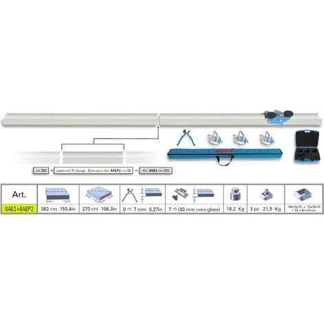 KERA-CUT EXT: équipement de coupe pour carreaux grand format. Le guide en aluminium, fixé sur le carreau par des ventouses anti-taches (positionnées