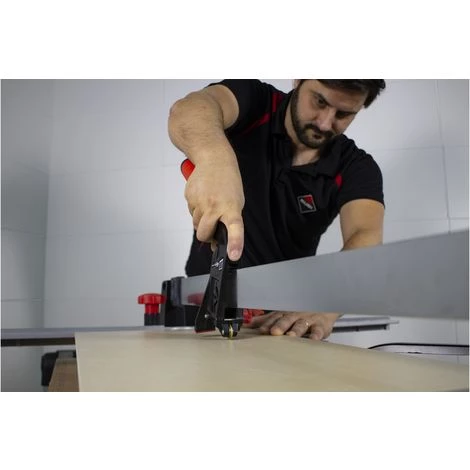 Système de guidage unique hautement résistant aux impacts. Longue vieEnsemble séparateur réglable en hauteur. Séparation optimale pour chaque épaisseur.Equerre avec pivotement central pour une mesure précise et rapide des coupes en diagonales.Équerre pivotante avec mesure laser de longue durée.Équerre giratoire avec pivot central pour une mesure rapide et précise des coupes angulaires.