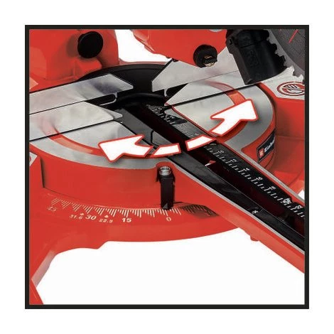 - La tête de scie est inclinable à gauche et à droite pour des coupes d’onglets