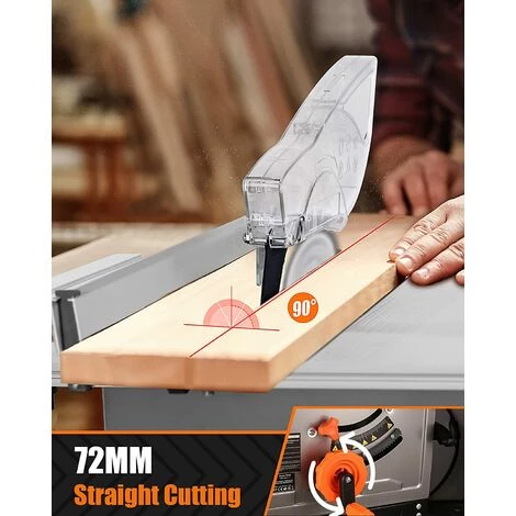 【Coupe inclinée 0-45 °】 La scie circulaire à table permet une coupe en biseau de 0 à 45 ° et la hauteur de coupe peut être ajustée de 50 mm à 72 mm. Vous pouvez les régler par la manivelle rotative et le volant de réglage. Cela répond à vos besoins de coupe de bois plus épais et plus gros.