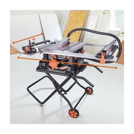Dimensions du produit (avec l’ensemble des pieds) : 1 050 mm x 750 mm x 940 mmDimensions du produit (sans l’ensemble des pieds) : 880 x 730 x 330 mmDimensions de la table max. : 1 200 mm x 640 mmDimensions de la table min. :745 mm x 640 mmPoids du produit : 28,5 kg - #Articles inclus#Articles inclus avec la scie sur table RAGE5-S Evolution Power Tools :
