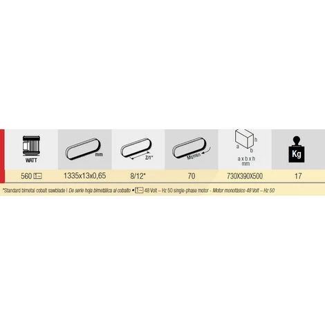 Caractéristiques techniques de la scie à ruban Femi 782XL-48Volt :