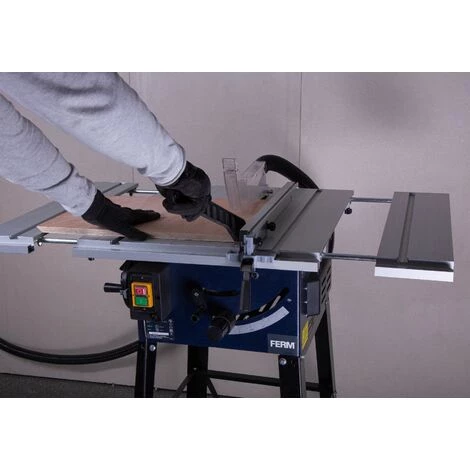 La scie à table TSM1033 FERM est une scie puissante équipée d’un moteur de 1800 Watts, d’une table et rallonges en aluminium, et une lame TCT de haute qualité, qui assurent une performance de coupe optimale. Grâce à les extensions, la machine est idéale pour la découpe de plus gros morceaux de bois. En outre, la scie est équipée d’un guide parallèle et un guide à onglet pour un travail précis. L’angle de coupe est réglable de 0 à 45 degrés. La scie à table est livrée avec une lame TCT 40-D, un poussoir, raccord d’aspiration de poussière, bouchon d’oreilles et des lunettes de protection.