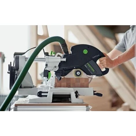 Une véritable station de sciage : pour un maintien maximal et une excellente précision, même en déplacementLa scie à onglets radiale Festool KAPEX est soit vissée avec ses pieds en caoutchouc dans les trous prévus de la table multifonctions MFT KAPEX par enfichage soit vissée à la table avec le kit de fixation SZ-KS disponible en plus. La table multifonctions possède également des pieds en caoutchouc, l’un d’entre eux avec réglage vertical, idéal pour compenser de légères irrégularités du sol. La scie à onglet radiale Festool KAPEX se transforme en une véritable station de sciage aussi en déplacement.