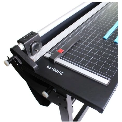 GUILLOTINA DE RODILLO La guillotina de rodillo manual para cortar papel, precisa y fácil de utilizar, perfecta para documentos, invitaciones, fotografías, tarjetas etc. Capacidad: 12 hojas de papel de 70 g/m². Cuchilla circular rotativa Protección de cuchilla con cabezal protector de plástico cerrado. Cuadrícula para un fácil alineamiento del papel Disponible con ancho de corte: Modelo 14 pulgadas 24 pulgadas 36 pulgadas 48 pulgadas 63 pulgadas 71 pulgadas 79 pulgadas Ancho de corte 350mm 610mm 910mm 1250mm 1600mm 1800mm 2000mm Tamaño de mesa 550 × 280 mm 800 × 315 mm 1200 × 330 mm 1460 × 330 mm 1800 × 330 mm 2000 × 330 mm 2200 × 445 mm Las medidas 1600, 1800 y 2000 mm se venden con patas. En medidas inferiores a 1600 mm, el producto no viene con patas incluidas.