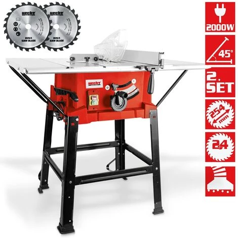 Hecht 8254 Scie sur table 2000W avec raccord pour aspirateur 4800tr/min 2 Lames de scie inclus
