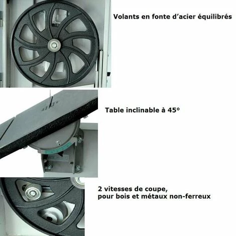 • 2 vitesses de coupe par changement de position de la courroie suivant les pièces à découper (bois/acier).
