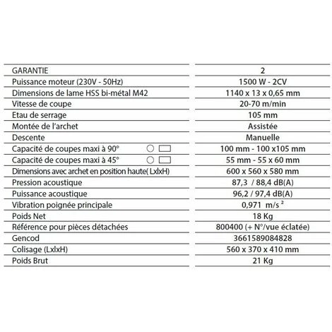 Les avantages de cette scie à ruban Leman SRM100sont :