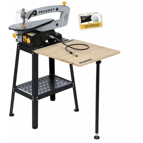 Scie a chantourner – Puissance : 120 W – Col de cygne : 465 mm – Type de table : fonte – Type de montage : universel – Capacité de coupe maxi : 50 mm – Véritable station de loisirs créatifs pour chantournage et travaux de précision. masque temporairement indisponible