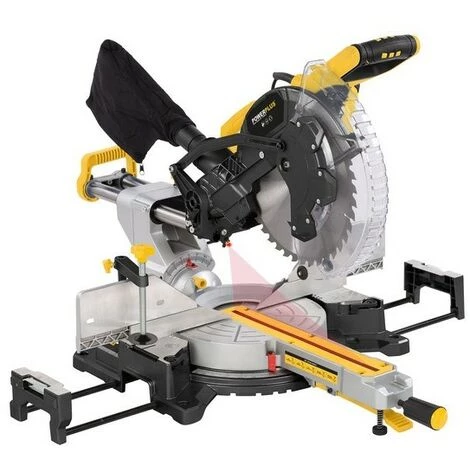 Un capot de protection protège vos mains lorsque vous travaillez et grâce au bouton de déverrouillage tout démarrage intempestif est évité. Cette scie à onglet de Powerplus comprend une lame de scie, un sac à poussière, une clé, une pince et 2 extensions.