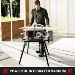 TACKLIFE Gener Scie Sur Table, 2000W 5000RPM, Aspirateur Intégré (taux D’enlèvement Des Copeaux 98%), Table Extensible En Aluminium (60-80CM), Scie à Onglets 45°, Scie Circulaire Sur Table Avec Lame 216MM*60T