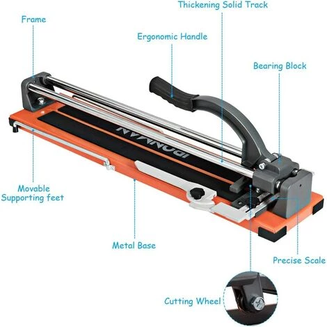 - ★ LAME 22 MM REVÊTEMENT EN TITANe ★ Les coupe-carreaux manuels sont équipés de molettes de coupe en carbure de 22 mm avec revêtement en titane, qui permettent une coupe plus puissante des carreaux et des coupes de carreaux plus lisses. Les molettes de coupe en carbure revêtues de titane durent plus longtemps que celles en matériaux traditionnels.