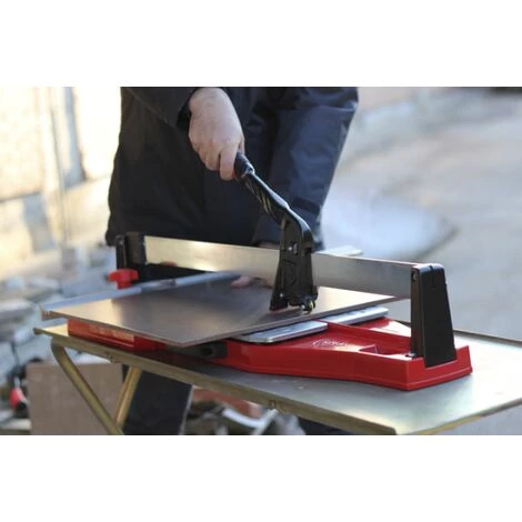 Cette coupeuse manuelle est conçue pour un travail intensif avec tous les types de carreaux de céramique. Les coupeuses manuelles TP-T sont idéales pour couper des carreaux en grès porcelaine (type BIa). Elles incorporent un système mono-guide très résistant aux impacts, ce qui leur procure une vie utile très longue. La poignée ergonomique des coupeuses manuelles TP-T est adaptée pour un système de travail en tirant la poignée et incorpore un séparateur réglable en hauteur avec une puissance de séparation de 1 000 kg très facile à utiliser et permet à l’installateur professionnel de bénéficier d’une plus grande vitesse de travail. En outre, le séparateur portable des coupeuses manuelles TP-T assure une qualité élevée et des coupes angulaires et en diagonale. Tous les modèles de la gamme de coupeuses manuelles TP-T intègrent une équerre giratoire avec pivot central pour le mesurage rapide et précis des coupes angulaires. Grâce à la butée latérale, l’installateur de carreaux de céramique peut faire des coupes répétitives d’une manière très simple et toujours avec une précision maximale.
