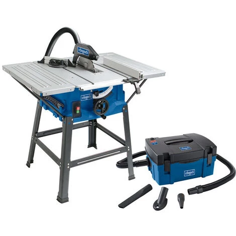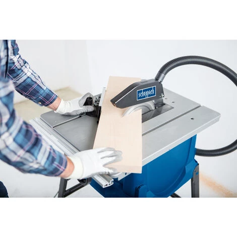 La scie à table Scheppach 10″ HS100S est dotée d’une lame escamotable sur les côtés gauche et droit, d’un volant et d’autres mesures de sécurité au travail. La scie à table est équipée d’un volant permettant de la régler de haut en bas. Comprend un support, un capot de scie, un guide d’onglet et un guide de traction.
