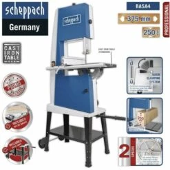Scie circulaire sur table SCHEPPACH 254 mm 2000W – HS110 Hauteur de coupe : jusqu’a max. 83 mm. Lame carbure de Ø 254 mm. Livrée avec un protecteur de lame, un guide d’angle et un guide parallele