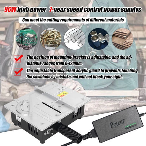 Il s’agit d’une sorte de mini scie à table multifonction, livrée avec des alimentations électriques de contrôle de vitesse à 7 vitesses haute puissance de 96 W, avec fonction de meulage, peut répondre aux exigences de coupe de différents matériaux. Livré avec un tuyau de dépoussiérage permettant de le connecter à un aspirateur afin que les débris générés lors de la coupe soient exempts d’éclaboussures et plus sûrs. Multifonctionnel, livré avec 4 lames de scie fabriquées en différents matériaux, peut répondre complètement aux exigences d’une utilisation quotidienne. Équipé d’une fonction de meulage et livré avec un disque de meulage de 50 mm de diamètre et 10 papiers de verre assortis. Parfait pour le bricolage, la construction de maquettes, la décoration du travail du bois, etc. Vous pouvez essayer.