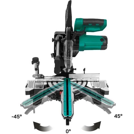 - Il est possible d’effectuer des coupes d’onglet de -45° à +45° et des coupes en biseau de -0° à +45°, ainsi que des coupes à double onglet.